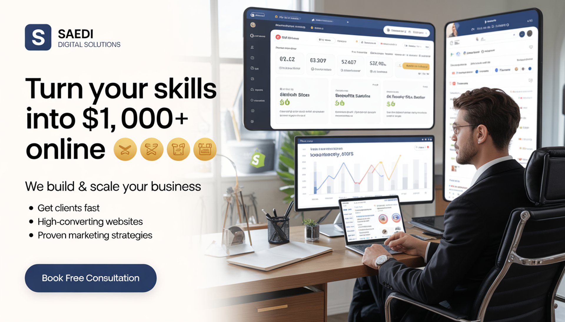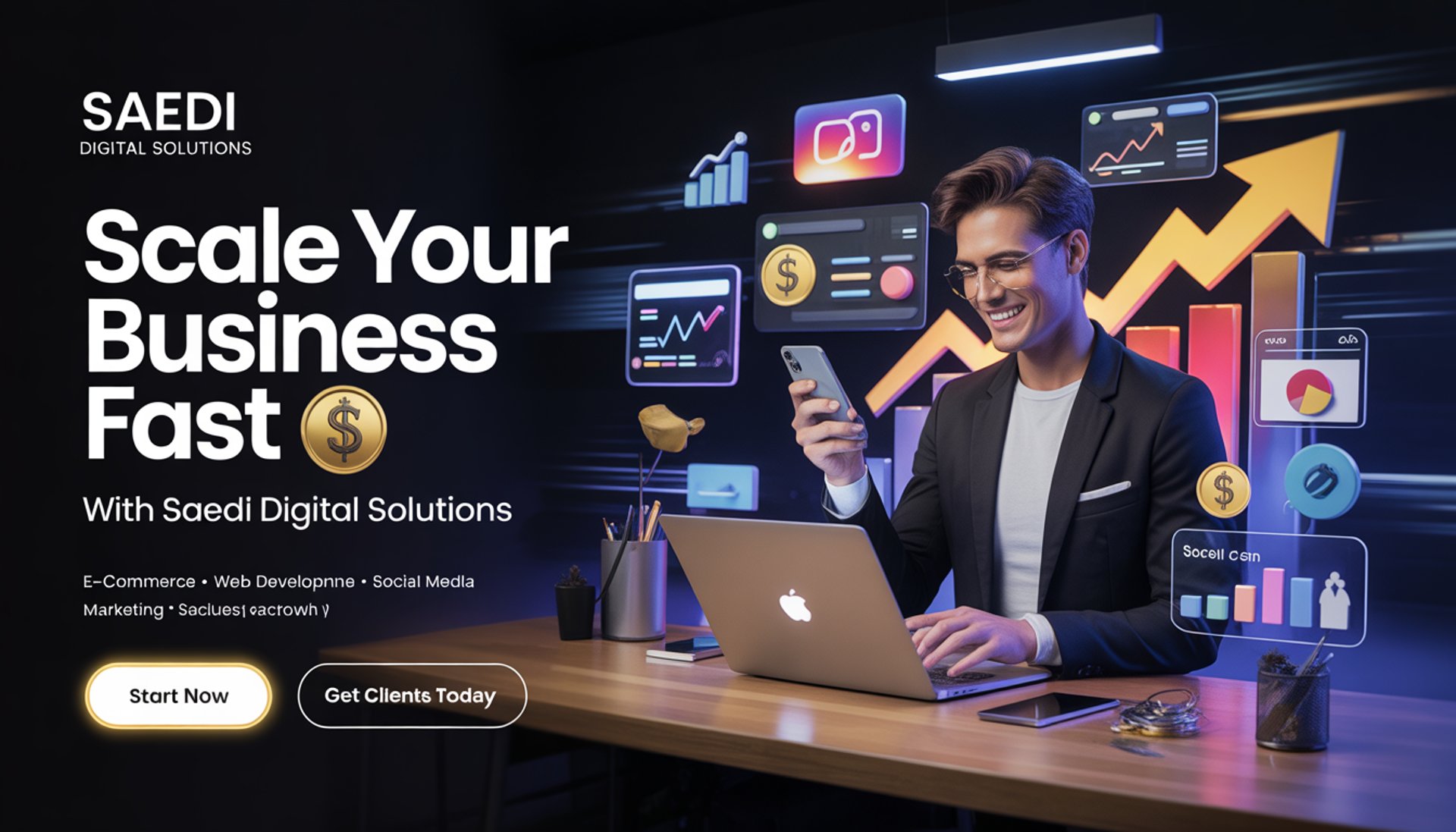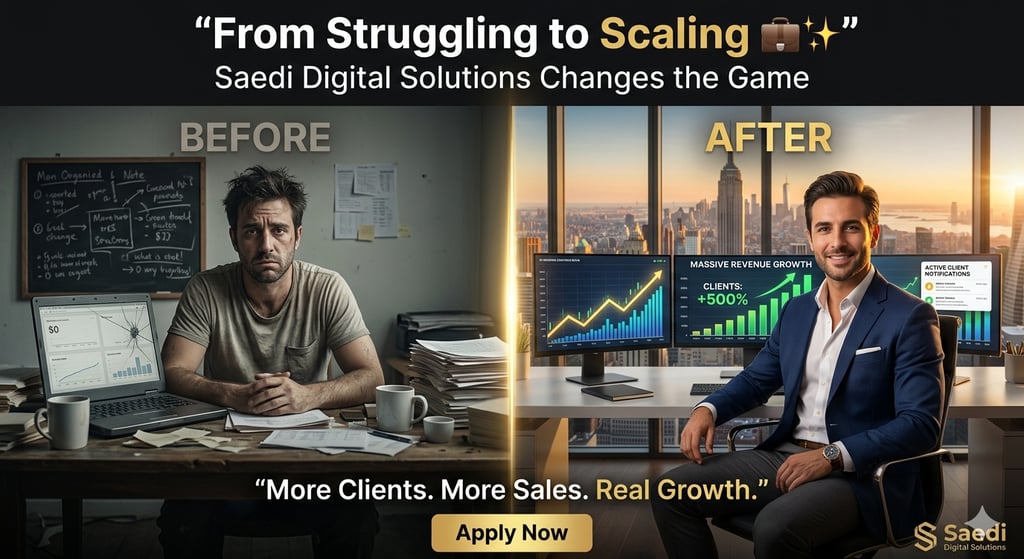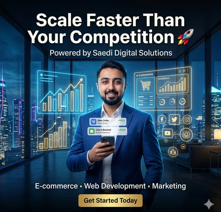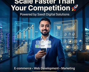 Saedi Digital Solutions helps ambitious businesses grow faster with powerful digital strategies. From high-converting websites to e-commerce growth and result-driven marketing, we turn ideas into scalable online success. Our expert team focuses on delivering real results. more traffic, more clients, and more revenue.